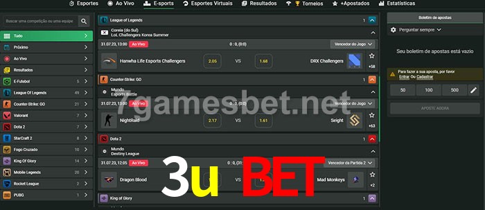 O 3u bet oferece uma grande seleção de opções de apostas em e-sports com probabilidades competitivas